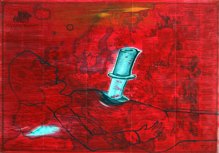" the radical mystery of existence" acrylic on map, 30 1/4 x 43 inches, 77 x 109,3 cm © by J. Trautwein 2003