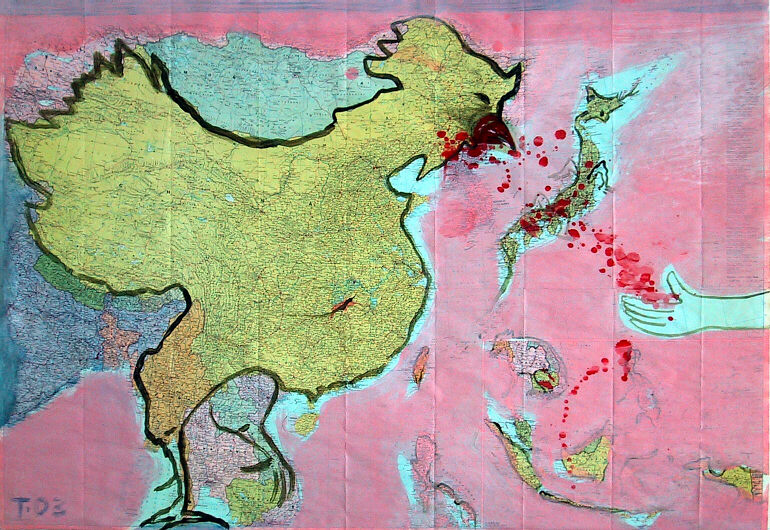 "history of repeated injuries" acrylic on map, 33 5/8 x 47 1/8 inches, 85,4 x 122,2 cm © by J. Trautwein 2003