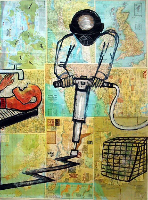 "the clearing of thought #2" acrylic on maps, 62 5/8 x 83 inches, 159 x 210,9 cm © by J. Trautwein 2003