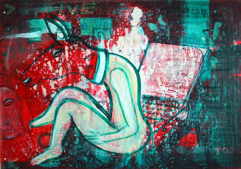 "multiple identities part 4 #13", acrylic on blueprint, 30 x 42 inches, 76,3 x 106,7cm, © by J.Trautwein 2002